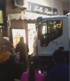 camion, incidente Castellammare, grave incidente a via Nocera, un camion sfonda la vetrina di un negozio.